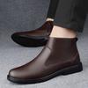 Fashion 2024 men's fashionable leather boots autumn and winter high-top sleeve cowhide side zipper large pile warm cotton boots