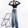 Flag-bottom Pants for Women Autumn Retro Cement Grey Jeans for Women Loose Versatile High Waist Slightly Flaming Wide-leg Pants for Women Autumn