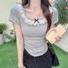 Lace Trim Bow Short-Sleeve Women's Summer Slim Fit Top