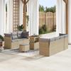 Ensemble de canapé jardin 11 pièces avec coussins Beige Rotin Acacia, Ensemble salle à manger jardin 3 pièces avec coussins 3365097