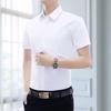 This slim-fit men's white short sleeve business shirt is designed for the modern professional looking for both style and convenience. Made from a high-quality polyester material, this shirt boasts a chemical fiber blended construction, ensuring durability and comfort. Its solid pattern and stand neckline offer a sleek, polished look that is perfect for business settings. The anti-wrinkle feature allows you to maintain a crisp appearance without the need for ironing, making it an ideal choice for the busy autumn season.