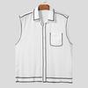 INCERUN Men Lapel Neck Sleeveless Buttons Up Stitching Semi-Sheer Casual Tank Tops
