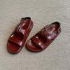 Zara Cowhide Vintage Open-Toe Strap Sandals 4Cm Women Sandals Crimson 3645510624