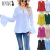 GMXIA Women's Spring and Autumn Lotus Leaf Long-sleeved Shirts, Solid-color T-shirts, V-neck Button Women's Tops