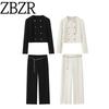 Za New Fall Women's Clothing 2025 Fashion with Padded Shoulder Double Breasted Suit Outwear Pants 8765656 8145656