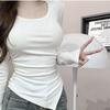 Experience comfort and style this autumn with our White U-Neck Long Sleeve Slim Fit T-Shirt. Crafted from high-quality polyester, this base layer offers both warmth and breathability, perfect for layering in cooler weather. The solid pattern and hooded neckline add a touch of Korean-inspired fashion flair, ensuring you look both sweet and spicy. With its long sleeves, this T-shirt provides a cozy and snug fit, making it an essential addition to your seasonal wardrobe.