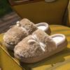 New thick-bottomed heightening bow fluffy slippers winter indoor home piled thermal cotton slippers can be worn outside