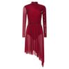 Womens Sparkly Sequins Dance Dress Mock Neck Long Sleeve Irregular Hem Stage Performance Gown