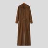 INCERUN Oversized Men Lapel Neck Long Sleeve Belt Waist Casual Loose Long Rompers Jumpsuits
