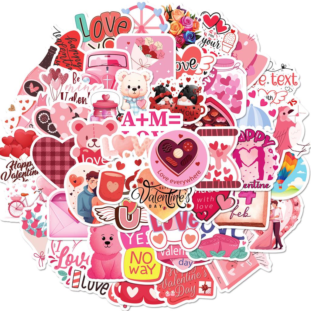 50 Valentine's Day Stickers Ins Style Personality Cartoon Sweet Valentine's Day Doodle Laptop Stationery Stickers