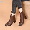 Square head fashion boots women's iron bag head rear zipper thick heel women's boots simple temperament leather boots Chelsea boots