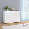 【Hochwertige Materialien und einfache Pflege】Der Schrank hat hochglänzende Dreitürpaneele, die Fingerabdrücke leicht abweisend sind und sich mit einem Wisch reinigen lassen. Die Seitenpaneele aus Massivholz kombiniert mit der modernen Oberfläche verleihen dem Möbelstück eine luxuriöse Struktur und steigern sofort den Stil Ihres Wohnzimmers.