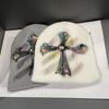 Fall/Winter Street Fashion Distressed Knit Cap for Men and Women, Versatile Retro Metal Cross Emblem Wool Hat, Couple Beanie Cap