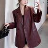 Leather jacket women's blazer spring and autumn new loose black pu temperament small suit top