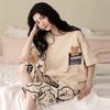 Korean Style Women's Summer Pajama Set – Imitation Cotton, Short Sleeve, Capri Pants, Thin, Cute, Plus Size