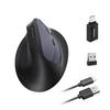 This ergonomic vertical mouse features six buttons. Its compact size and weight make it ideal for travel and suitable for users with small to medium hands. Specifications: Wireless 2.4GHz + Bluetooth 5.1 + Type-C Wired DPI Switching: 800/1200/1600/2000/4800 Dimensions: 11.7 x 6.4 x 8.2 cm Weight: 105 grams. The mouse has a built-in rechargeable battery. The ergonomic vertical design of this Bluetooth mouse allows you to hold the mouse at a natural wrist angle, promoting a natural grip posture and reducing strain on your wrists and shoulders. The non-slip design with recessed holes on the side ensures a comfortable grip and secure wired or wireless connection. Easily select your connection method by pressing the button underneath the mouse. 2.4G Connection: Equipped with a wireless USB receiver, it's plug-and-play, eliminating the need for complicated drivers. Bluetooth connection: Press the button on the bottom of the mouse to select Bluetooth, then turn on the mouse