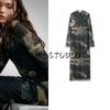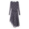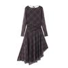 Spring New Women's Clothing American Retro Gingham Ruched Silk Net round-Neck Long-Sleeved Dress 5039284