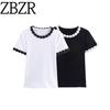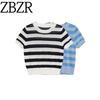 Zbzr Spring New Women clothes Western Style Fashion Slim fit Contrast Color Knitted round Neck Short sleeve Outerwear 0014114