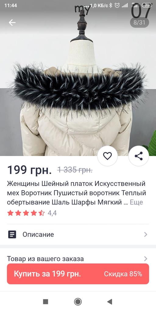 Заказывала чёрный с белыми ворсинками, а прислали чёрный с серо-зелёными мне такой к куртке не подходит. Да ещё и вылазит, пока рассмотрела, много ворса осталось в руках и на одежде Не советую продавца!💩